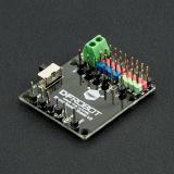 在硬币大小的bluno beetle控制器上如何接线?如果你不懂焊接,这将会是一个头痛的问题。 为了让用户方便快捷地利用Bluno Beetle的端口资源,DFRobot特制了这款扩展板。只要按照说明,将Bluno Beetle焊接在上面,你就可以直插3pin的传感器和其他扩展设备。另外,扩展板还具备外接电源接口,可直接外接供电。