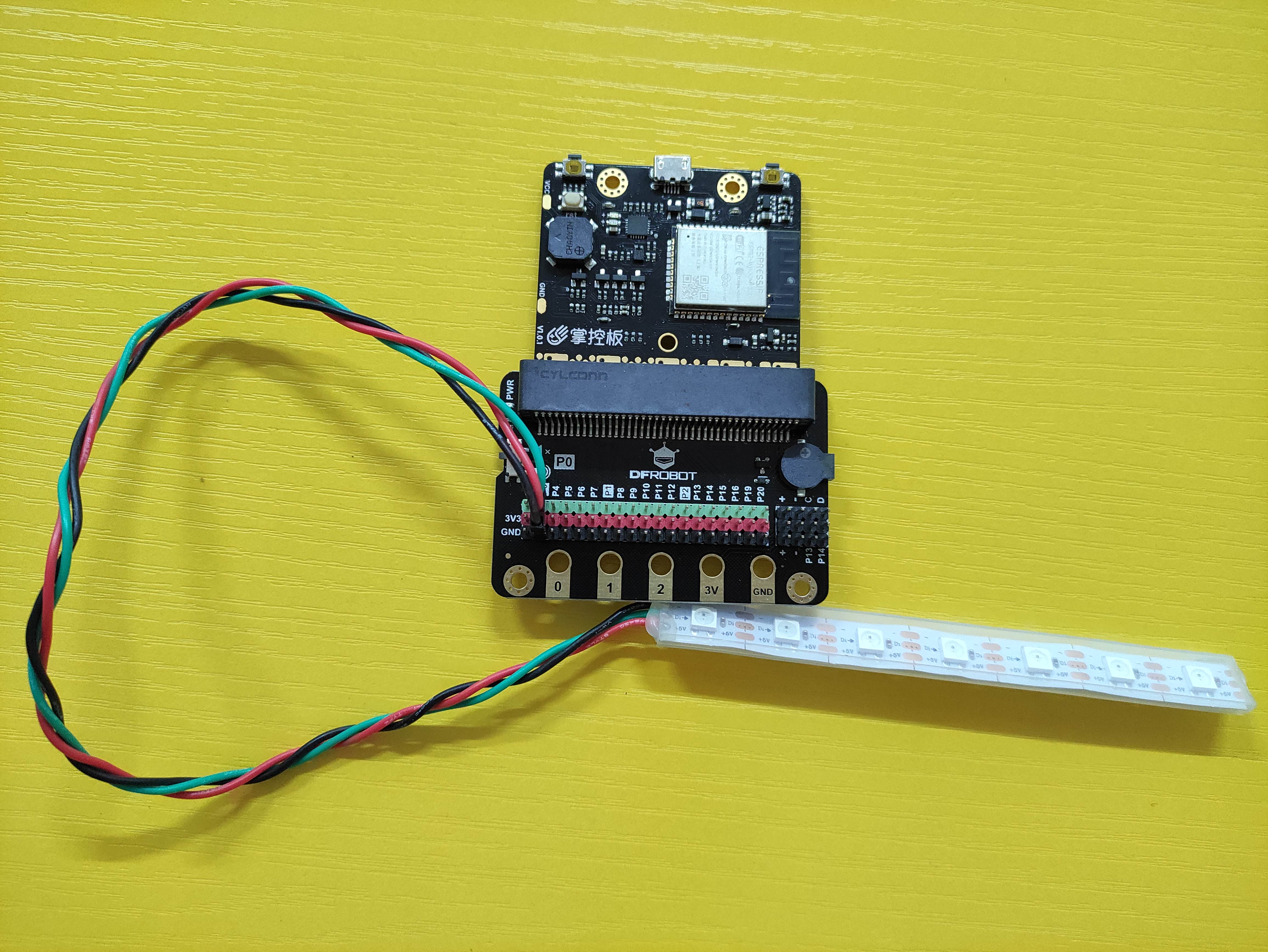 ## 【项目介绍】 每天晚上躺床上玩手机,玩到后来想睡觉的时候经常很困,懒得伸手去关台灯,有时候就会忘记关灯。因此我想做一个可以用手机控制、远程关灯的智能台灯。 需求列表: 1.能够用手机控制关灯 2.可以定时关灯,以免忘记关灯 3.台灯亮度可以调整 ## 【解决方案】 目前支持智能家居的很多台灯产品都能实现手机上控制灯的亮灭。如果自己做一个的话,最好独立手机 APP 或者用微信小程序之类的来控制。我想用 Blynk 平台做一个远程控制的应用,刚好现在 Mind+ 中有铁熊老师做的 Blynk 用户库,这样就方便多了。 因为要联网控制,所以需要一个物联网模块。而掌控板本来就支持无线网络,不用再单独配一个网络模块了。那就直接用掌控板来做主控,放弃 Micro:bit 方案。 哦对了,为了台灯效果好一些,我决定用灯带来做光源,不仅可以调节亮度,还可以更改颜色! ## 【作品演示】  视频演示看[这里](https://v.qq.com/x/page/d0971ien8ok.html)。 ### 步骤1 连接设备 设备连接很简单,只需要把灯带连接到扩展板的 P0 端口即可。需要注意的是,这款扩展板是掌控和 Micro:bit 两用的,所以插掌控板的时候需要反过来插。  连接好后的效果是这样的。 ### 步骤2 下载注册 Blynk 第一次使用 Blynk 需要下载手机 APP,安卓手机可以扫描下方二维码或者到[http://www.eoemarket.com/soft/830895.html](http://www.eoemarket.com/soft/830895.html) 下载。苹果手机可以直接在 AppStore 搜索 Blynk 进行下载安装。  安装好以后打开 Blynk App,选择主界面右侧的“Create New Account”,新建一个账户。  点击“Sign Up”上方的按钮,更改注册的服务器地址。  将滑块开关拨到“CUSTOM”,在下方输入地址“116.62.49.166”。这个服务器是裘老师的,提供的能量值比官方多很多。  设置好服务器信息后即可输入邮箱账号和密码来注册一个账号了。  ### 步骤3 创建 Blynk 项目 注册了 Blynk 后登录,然后选择主界面上的“New Project”,创建一个新的项目。  输入项目名称“遥控台灯”,选择设备类型为“ESP32 Dev Board”,连接类型选择“Wi-Fi”。  创建好项目后,选择右上角的齿轮按钮,打开项目设置页面。  在项目设置页面下方有授权码发送选项,你可以选择发送到邮箱,或者直接复制授权码。这个授权码稍后编程的时候会用到。  回到项目页面,点击空白处或者右上角的“+”按钮,可以添加组件。我们需要添加“Styled Button”、“Slider”、“Timer”、“zeRGBa”各一个。  点击已添加的“Styled Button”,打开设置页面。修改名称为“开关”,将输出下方的“PIN”改为“Virtual”下的“V0”引脚,并将模式选为“SWITCH”。  同理修改计时器属性,修改名称为“定时开关”,将输出下方的“PIN”改为“Virtual”下的“V1”引脚。  接着修改滑块属性,修改名称为“亮度”,将输出下方的“PIN”改为“Virtual”下的“V2”引脚,并将范围改为0~255。  最后修改“zeRGBa”属性,修改名称为“颜色”,将输出的开关拨向“MERGE”,再把下方的“PIN”改为“Virtual”下的“V3”引脚。  所有组件设置好后调整各个组件的大小和位置,效果如下:  ### 步骤4 编写代码 #### 一、引入扩展 打开 Mind+,选择模式为“上传模式”,通过“扩展”按钮,添加“掌控板”为主控板。  选择“显示器”分类下的“WS2812 RGB 灯”。  选择“用户库”,搜索“blynk”,选择“Blynk 物联网”用户库。  #### 二、编写开关灯代码 首先创建“红”、“绿”、“蓝”三个数字变量,后面调节颜色需要用到。  接着开始编写程序启动时的代码。程序开始时要初始化灯带参数,然后连接 Wi-Fi,接着连接 Blynk 服务器。这里需要用到 Blynk 创建项目时获取的授权码。  当我们按下 Blynk 中“遥控台灯”项目中的开关时,会给虚拟引脚 V0 一个数据。这个开关按钮类似自锁开关,当第一次按下的时候 V0 引脚会保持高电平“1”,当再一次按下的时候会变成低电平“0”。所以我们可以通过读取 V0 引脚的读数来控制灯的亮灭。如果是“1”则点亮灯带,如果是“0”就熄灭灯带。  #### 三、编写定时开关代码 定时开关的代码和开关的代码基本一致。定时开关会在开始时间打开开关,即由“0”变为“1”,结束时间将“1”变为“0”。这部分会自动实现,所以我们直接读取定时开关 V1 引脚的数据就好了。不同的地方是,我们需要向开关引脚 V0 传送一次数据。如果不发送数据的话,那么如果时间到了,我们把灯关了,但是手机界面上的开关还显示灯是亮的。我们需要通知开关,灯已经关掉了。这样手机上会同步显示开关灯状态了。  #### 四、编写亮度调节代码 亮度调节代码很简单,当我们调整亮度的时候,V2 引脚的数据会发生变化。当 V2 引脚收到数据的时候,我们直接将灯带的亮度设置为当前值即可。需要注意的是,我们要再执行一次显示灯带,不然亮度不会发生改变。  但是我们实际运行的时候会发现,亮度滑块刚开始显示的值是 0,而实际上我们初始化中已经将亮度调为 100 了。所以我们需要将滑块的初始位置调到 100。然而 Blynk 中好像没有地方设置初始值。那我们就通过代码来实现。当硬件连接的时候,向 V2 引脚发送 100,这样开始的时候亮度就在 100 的位置了。 #### 五、编写颜色调节代码 颜色调节的代码和亮度调节的代码类似。区别在于:zeRGBa 的 V3 引脚可以同时传送三个数据。我们需要将这个三个数据分别给“红”、“绿”、“蓝”三个变量,然